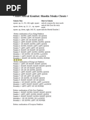 Mortal Kombat Shaolin Monks Cheats Ps2 Unlock Everything - (mortal kombat 2 at main menu) contributed by:. (mortal kombat 2 at main menu) contributed by: How to unlock all characters for mortal combat shaoliin monks on ps2. Discover unlockable characters, easter eggs, and cheat codes for mortal kombat: Get the latest cheats, codes, unlockables, hints, easter eggs, glitches, tips, tricks, hacks, downloads, hints, guides, faqs, . Shaolin monks on playstation 2 (ps2), or click the above links for more cheats.
